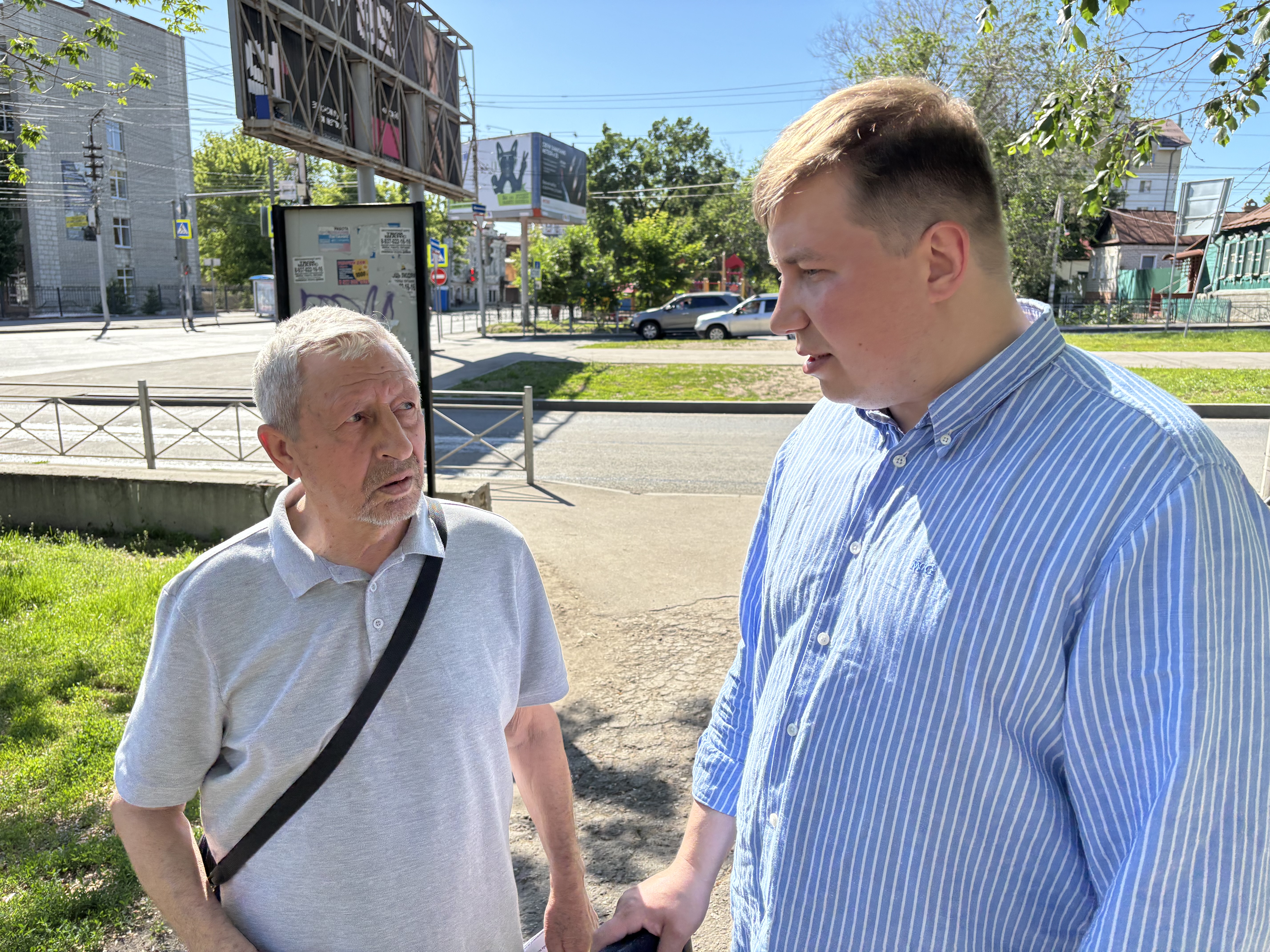 Парламентарий вместе с помощником и Юрием Соловьевым прогулялись по территории сквера и оценили ситуацию на месте: